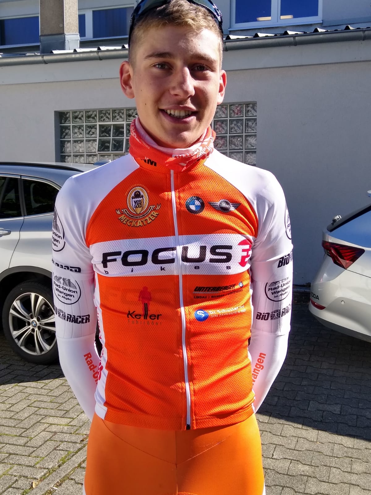 Die anspruchsvolle Strecke forderte die Jungs sehr und es gab viele Stürze, die zumeist glimpflich endeten. Emil Herzog ließ von Anfang an nichts anbrennen und fuhr meist als Tempomacher in der Führungsposition. Das Fahrerfeld war daraufhin langgezogen und die ersten Fahrer mussten den Zug fahren lassen. Der Unionsfahrer fasste sich ein Herz und griff schon in der zweiten Runde an. Dieser Attacke konnte nur Mateo Groß (RV Concordia Reute) standhalten und so fuhren die beiden Ausreißer an der Spitze. Der Vorsprung wuchs von Kilometer zu Kilometer. Eine 20-köpfige Verfolgergruppe versuchte vergeblich, mit in die Entscheidung einzugreifen aber die beiden Ausreißer waren zu stark.